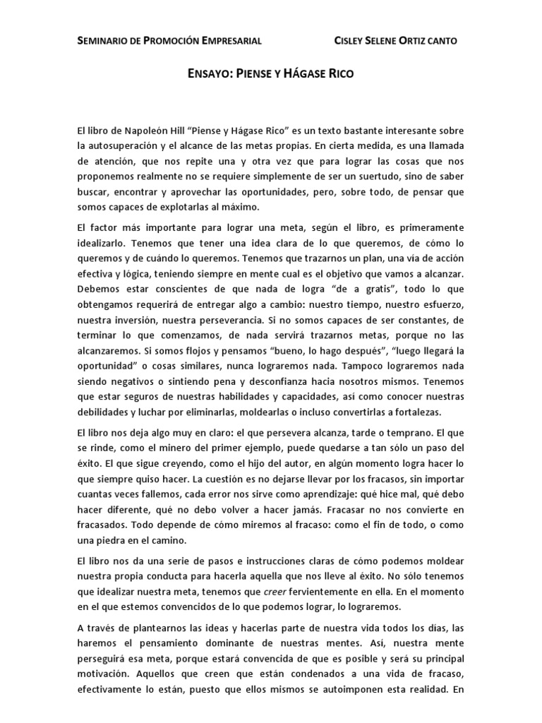 Resumen Del Libro Piense Y Hagase Rico Pdf from imgv2-1-f.scribdassets.com Napoleon hill fue un escritor estadounidense. En él, usted encontrará la magia de la autodirección, de la planificación organizada, la autosugestión, las asociaciones inteligentes, un sistema sorprendentemente revelador de autoanálisis, planes detallados para vender sus servicios personales. Si este contenido te ha gustado y ayudado puedes colaborar con el canal para seguir compartiendo para tu crecimiento personal. Aquí lo puedes descargar gratis y completo, de manera sencilla. Piense y hágase rico es una obra diseñada para arrastrar al triunfo, entendido no solo como triunfo económico, sino, sobre todo, como logro de íntima satisfacción que permite el equilibrio personal. Se conoce como el método más famoso y efectivo para hacer dinero ya que con más de diez millones de copias vendidas, ha tenido más éxito que cualquier otra obra de su género. Descargar libro piense y hágase rico ebook del autor napoleon hill (isbn 9788466353151) en pdf o epub completo al mejor precio méxico, leer online gratis opiniones y comentarios de casa del libro méxico A short summary of this paper.